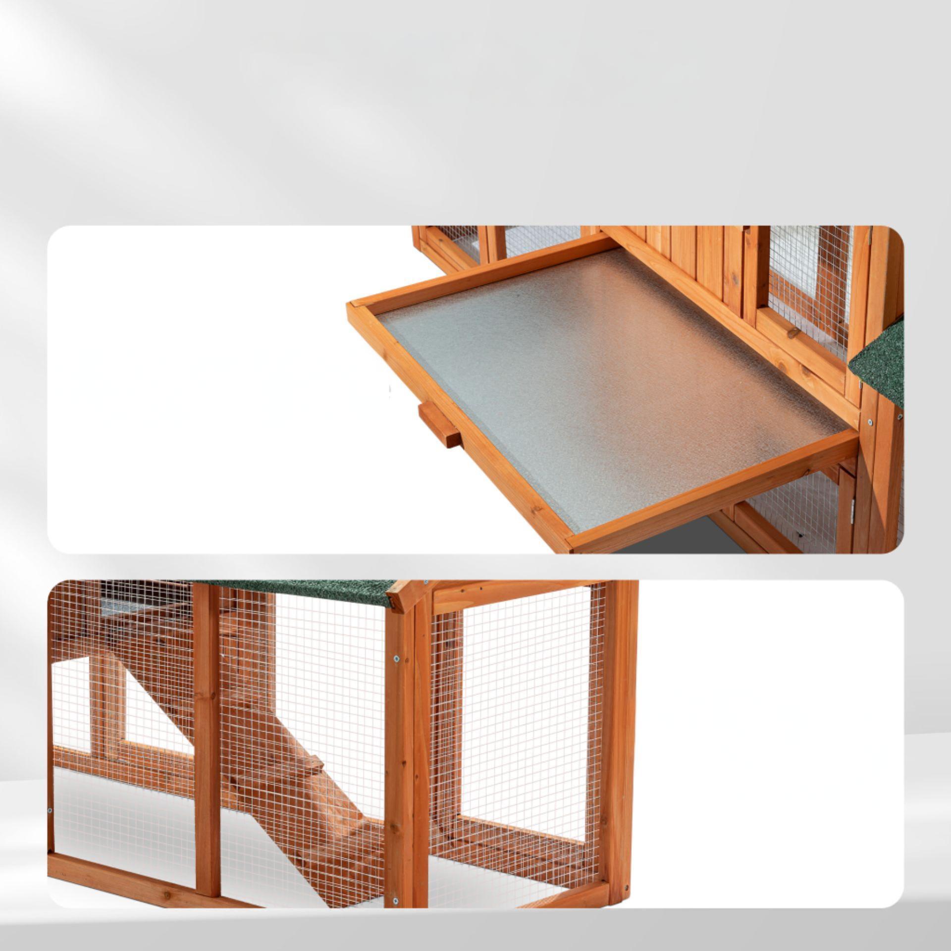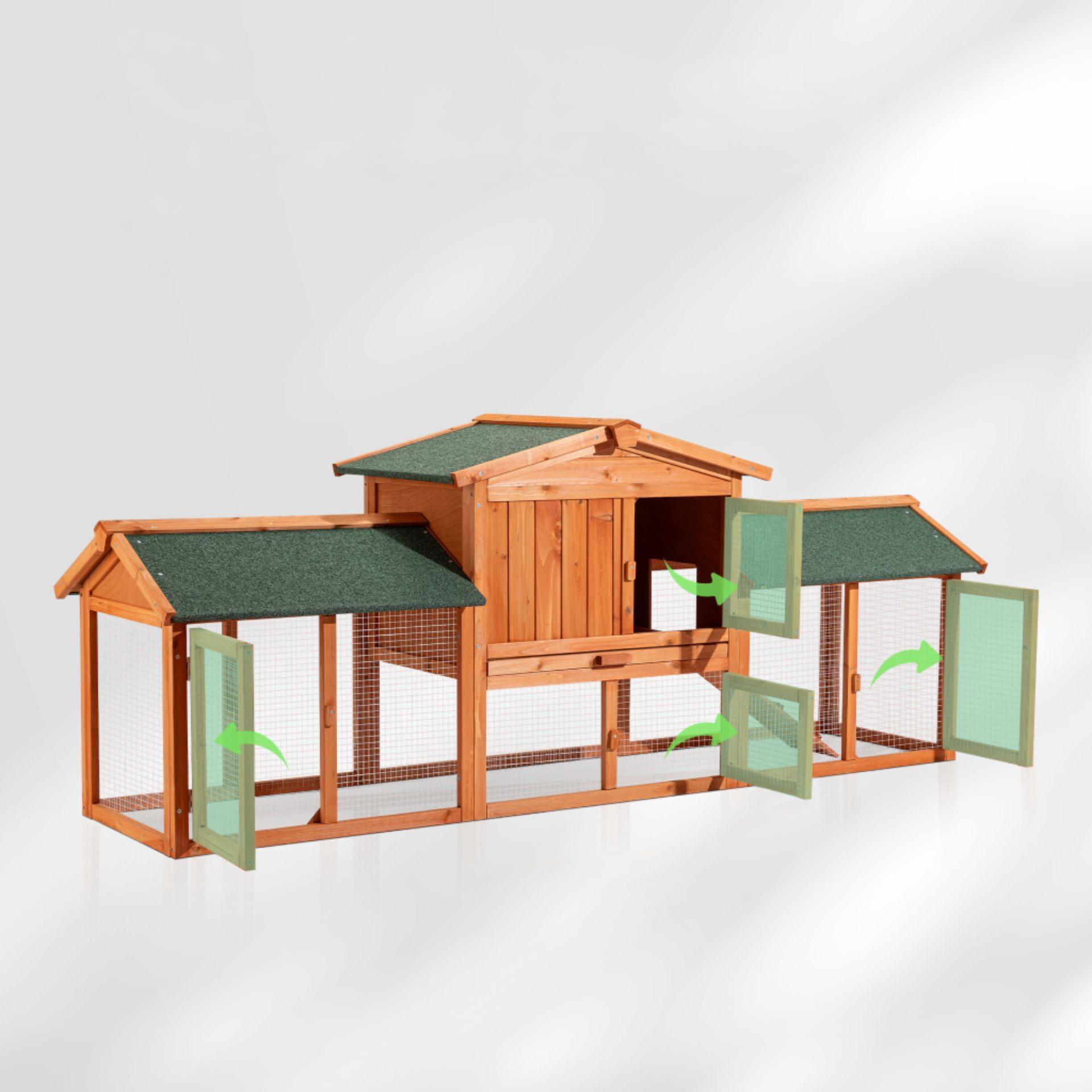 Bezpieczna rampa: Frontowe wejście wyposażone w rampę ułatwia zwierzętom swobodne wychodzenie na wybieg.