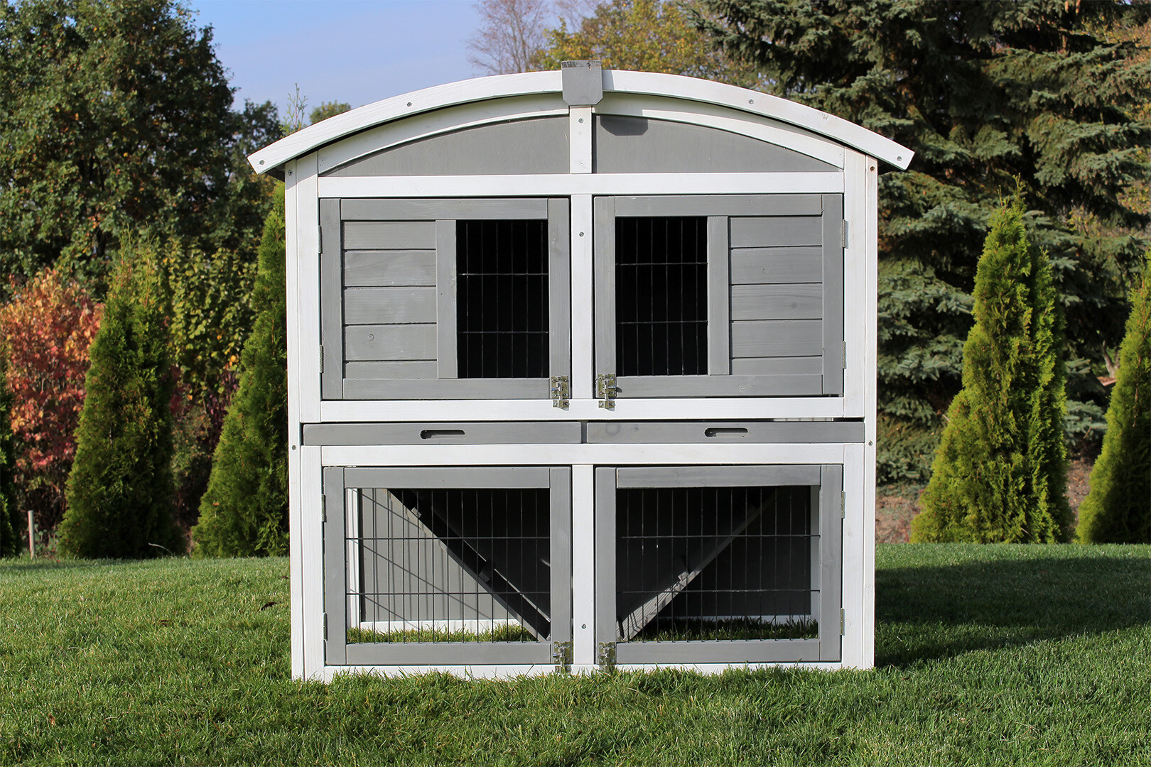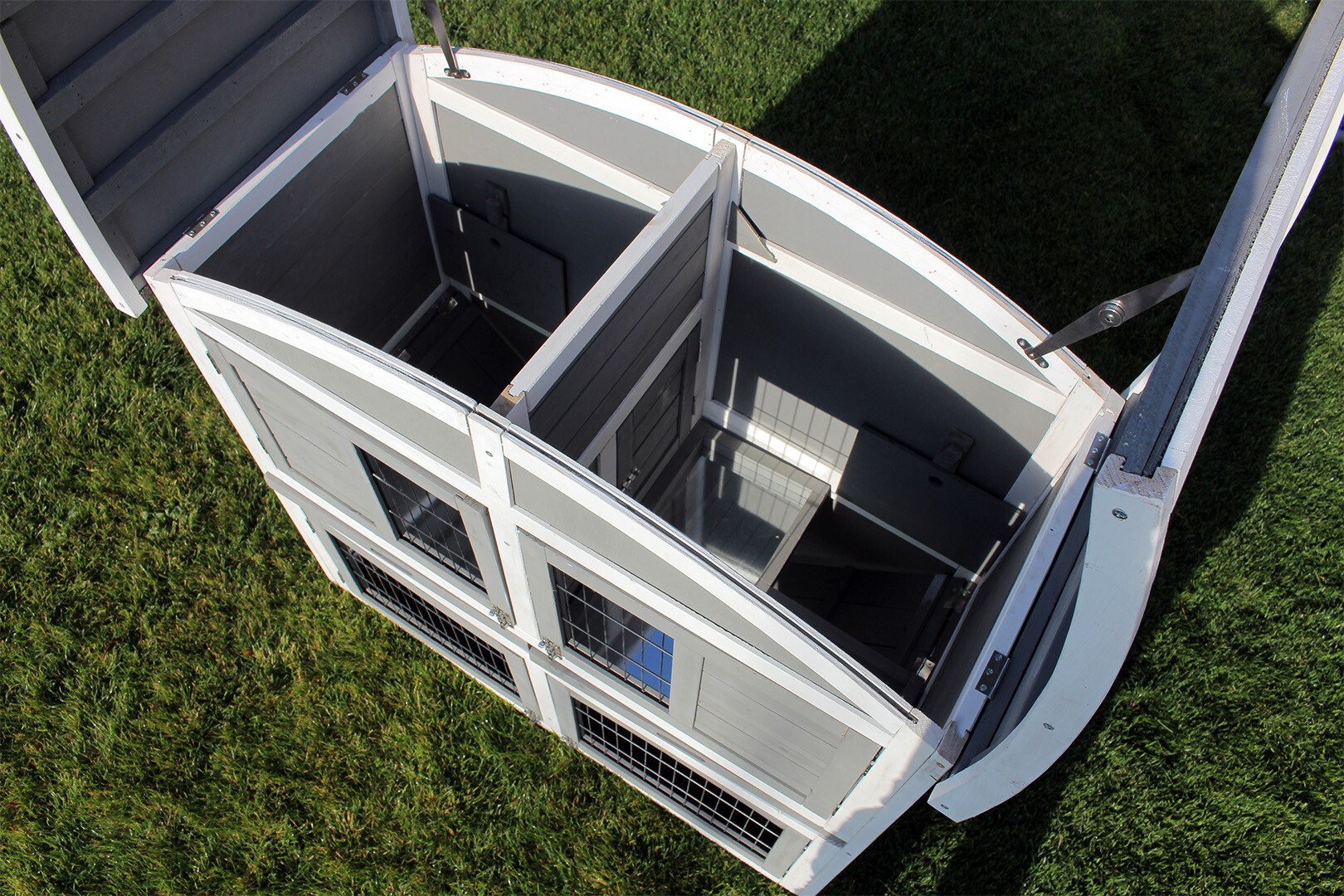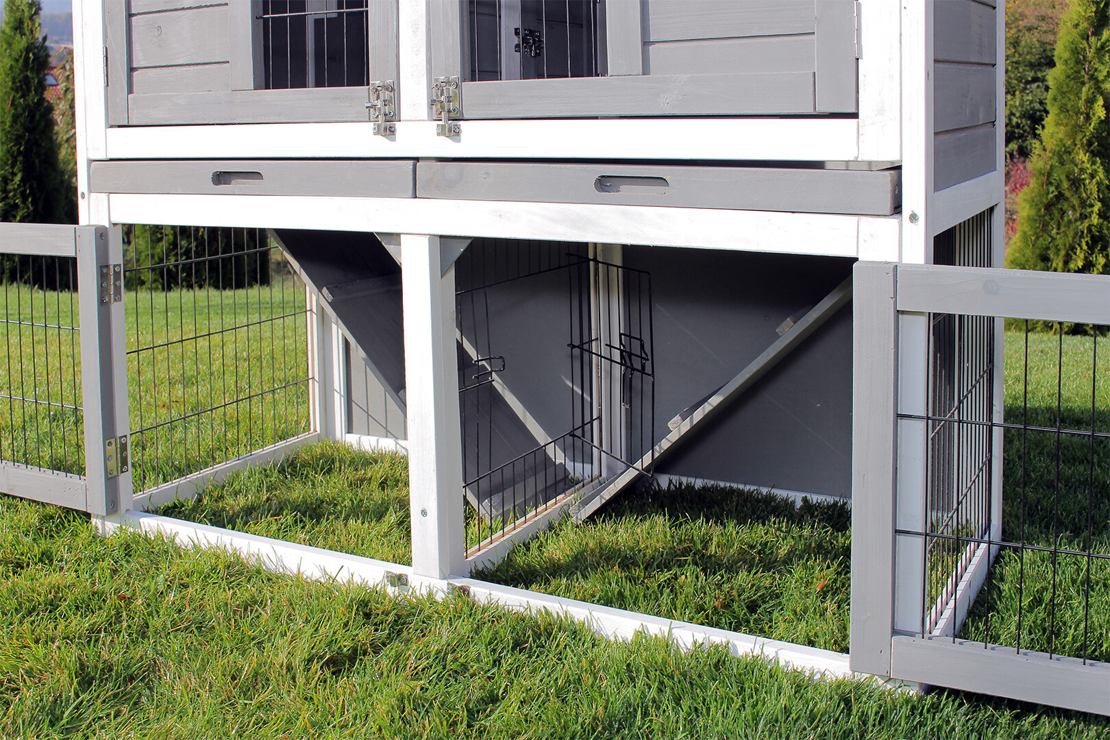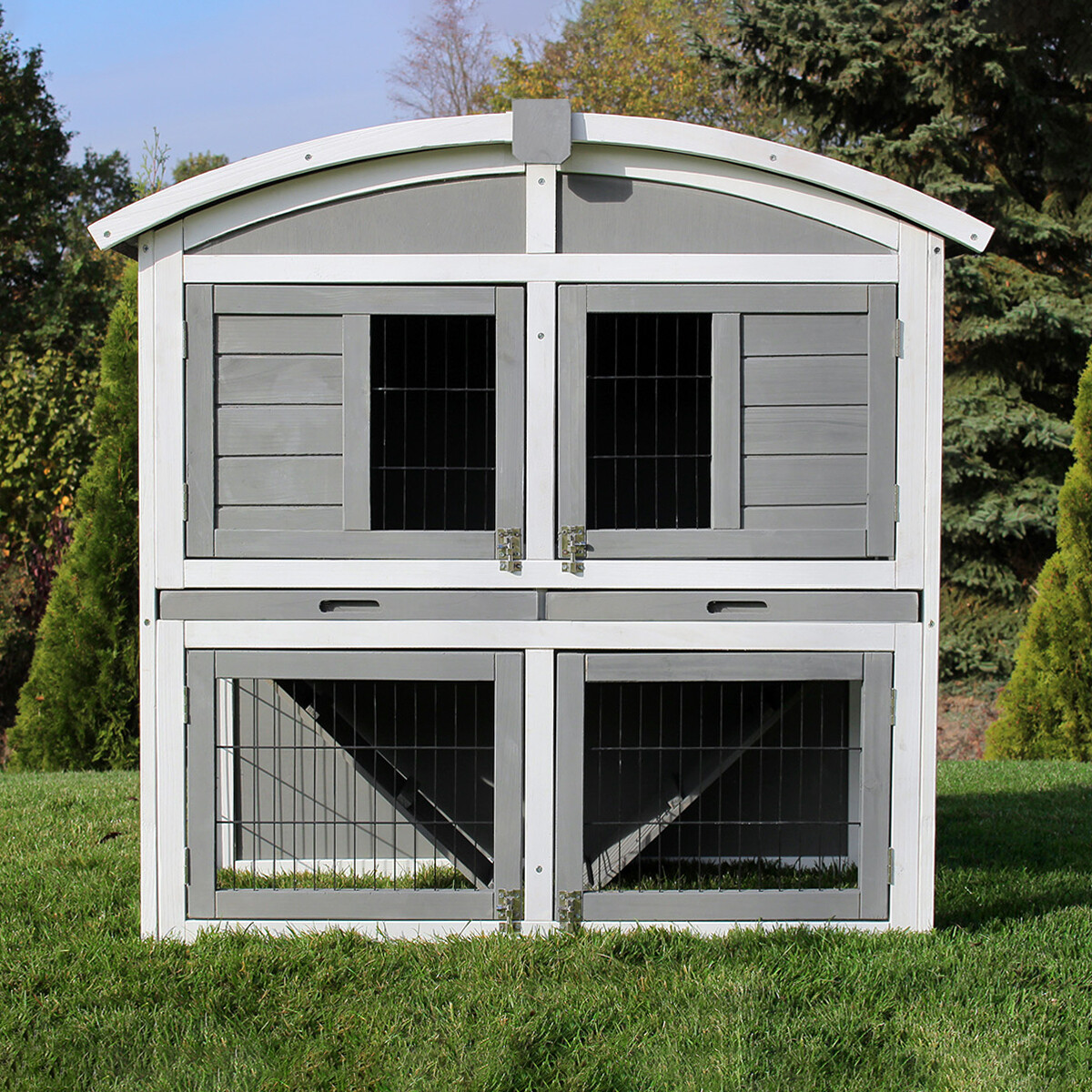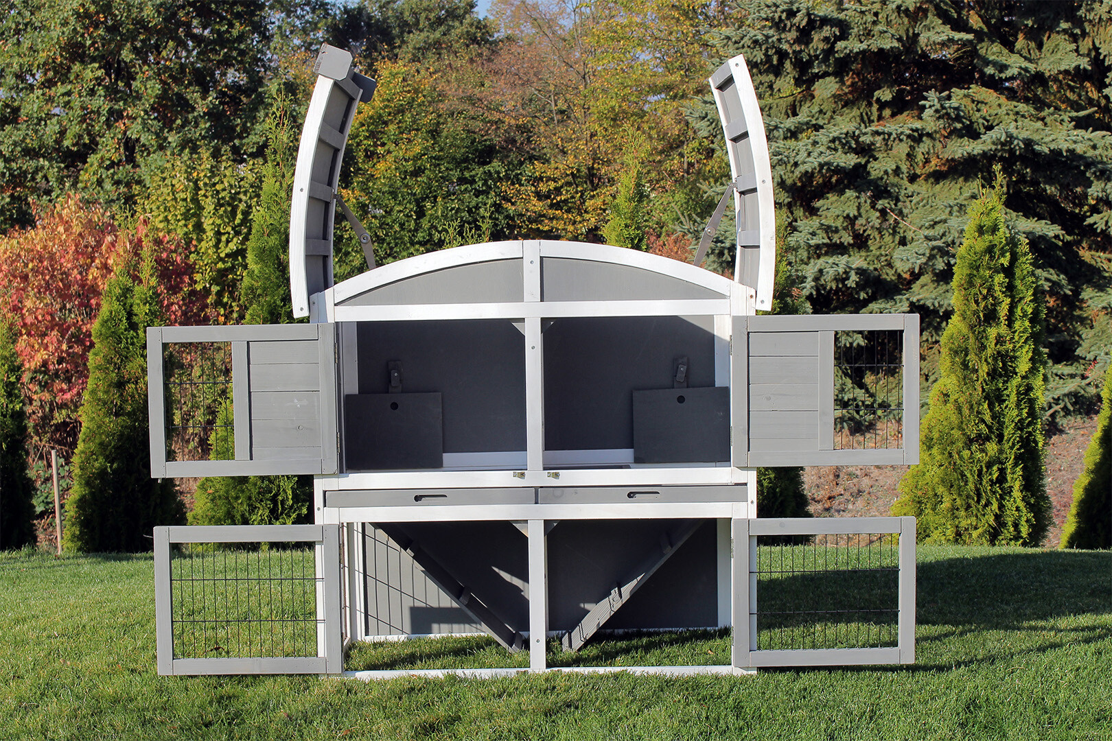 Zaprojektowaliśmy ten model z myślą o właścicielach. Cztery pary drzwi oraz w pełni otwierany dach pozwalają na błyskawiczny kontakt ze zwierzętami. To idealne rozwiązanie, jeśli chcesz podać smakołyk lub wyjąć królika do zabawy bez zbędnego stresowania zwierzęcia.