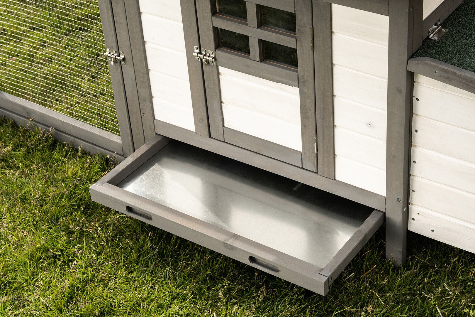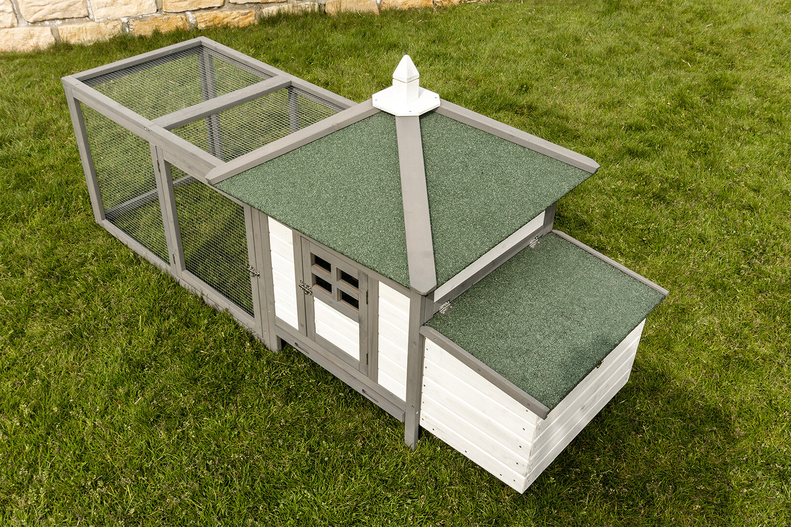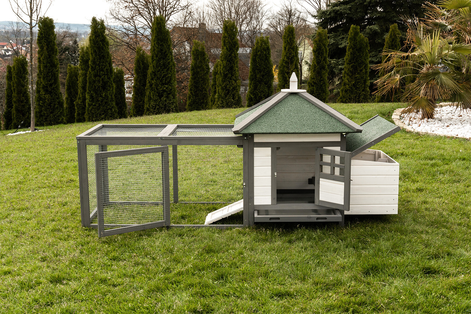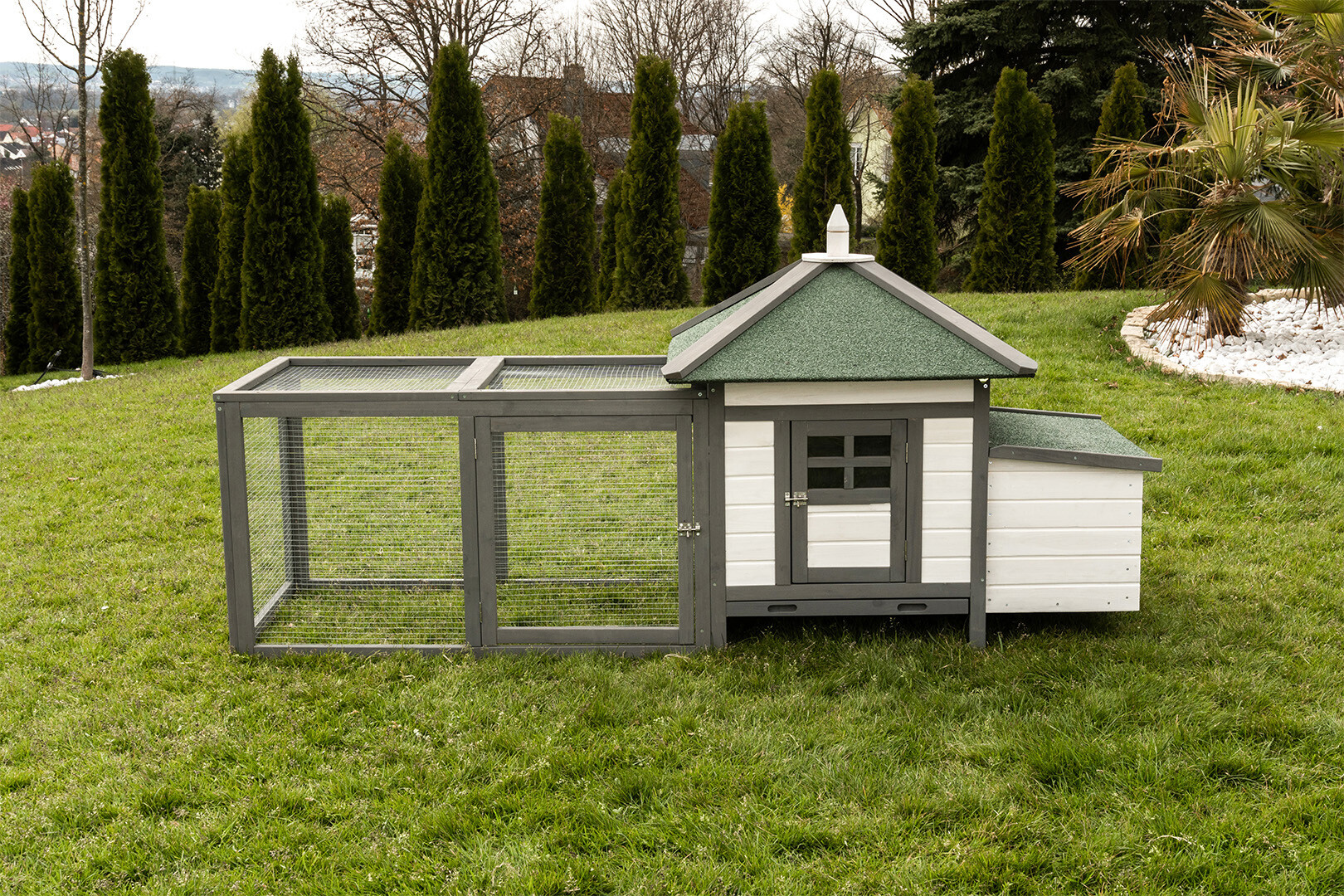 Model K200 to połączenie nowoczesnej estetyki z niezawodną trwałością. Dzięki zastosowaniu drewna olchowego wykończonego w stylowym, biało-szarym zestawieniu kolorystycznym, kurnik staje się nie tylko funkcjonalnym schronieniem, ale i prawdziwą ozdobą każdego ogrodu.