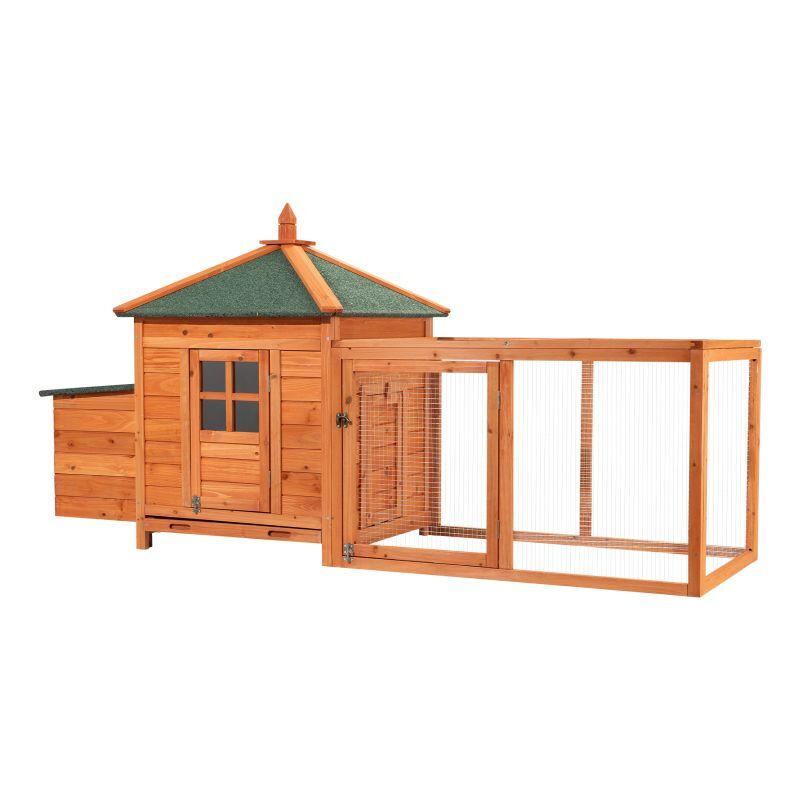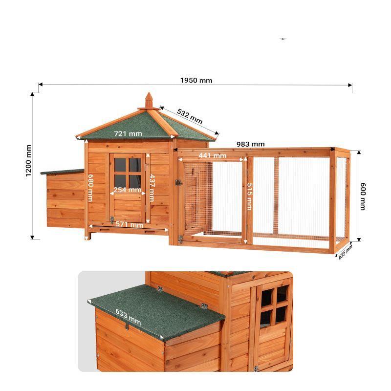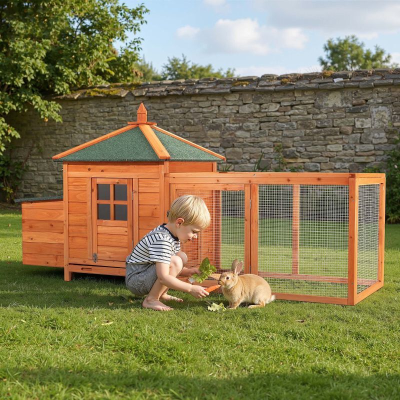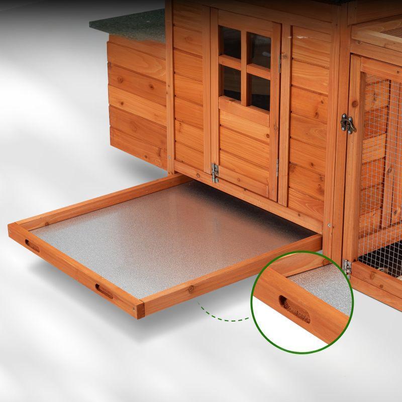 2. Intuicyjna komunikacja: Wnętrze domku połączone jest z wybiegiem za pomocą rampy. Zwierzęta mogą swobodnie decydować, czy chcą przebywać na świeżej trawie, czy schować się w zacisznym, suchym wnętrzu.
