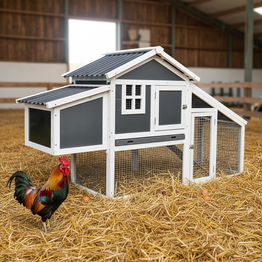 Maksymalna Przestrzeń i Dobrostan: Duży wybieg (freilauf) połączony z przytulnym piętrem pozwala kurom na naturalne zachowania – drapanie, grzebanie i bezpieczny odpoczynek.
