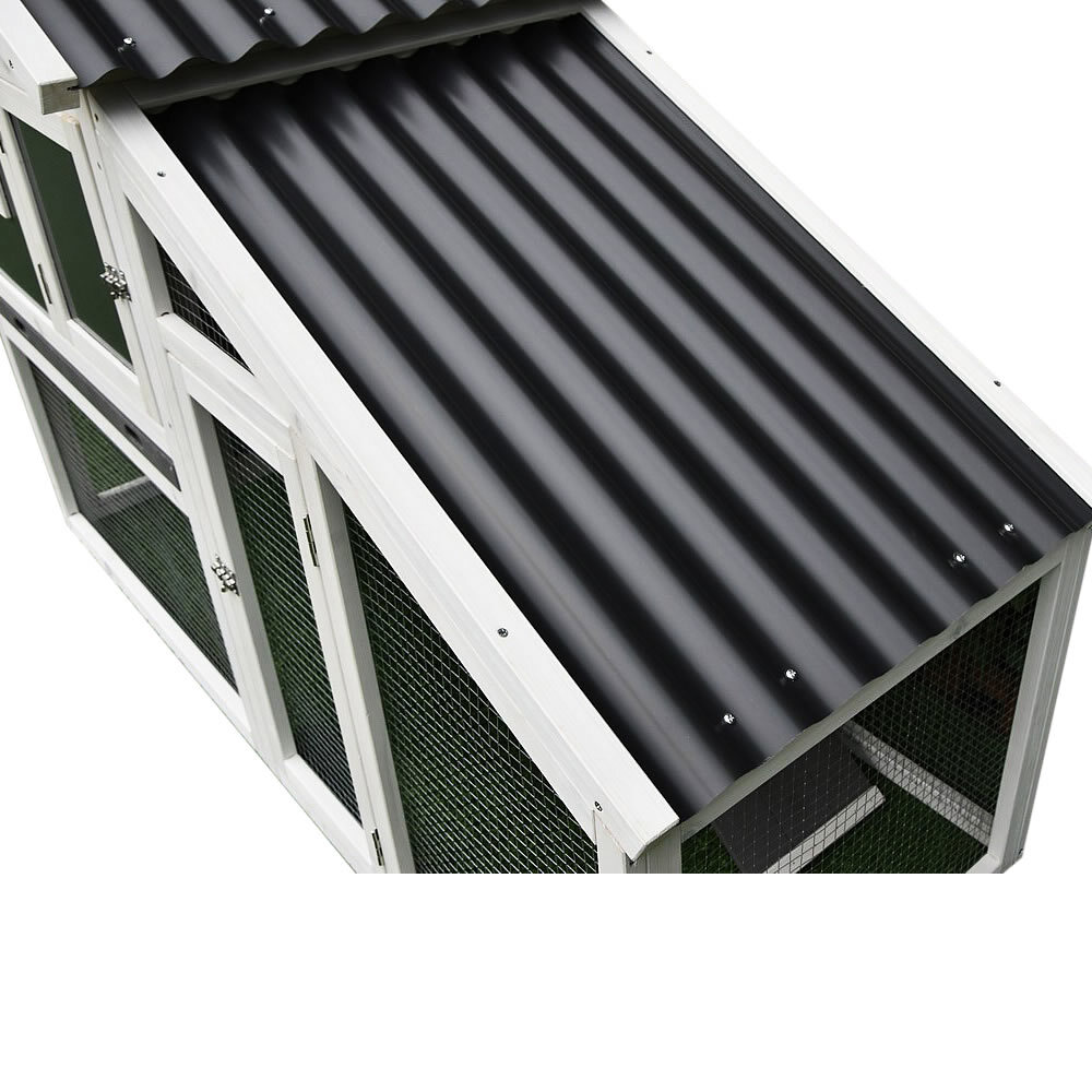 Dach z Płyt Falistych (Wellplatten): W przeciwieństwie do tanich zamienników, nasz dach zapewnia 100% szczelności i znacznie dłuższą żywotność, chroniąc kurnik przed gradem i słońcem.