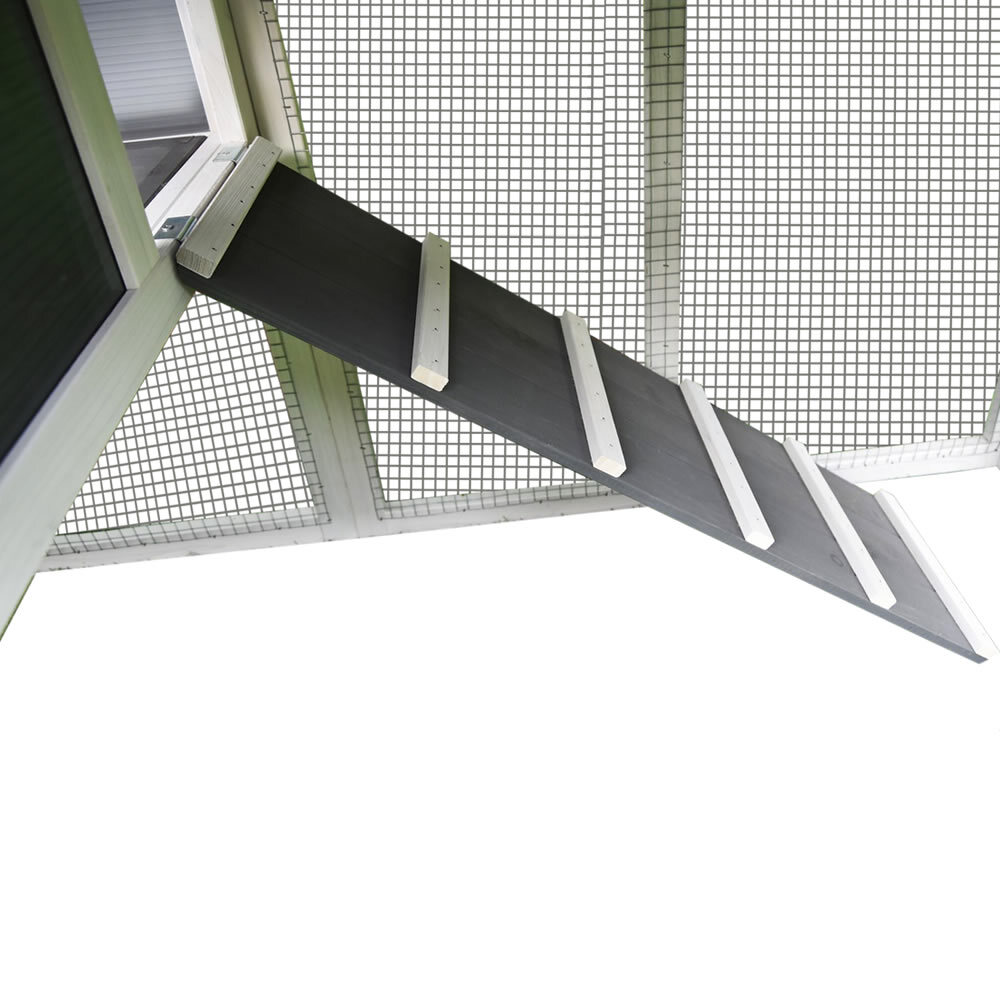 Zintegrowana rampa: Szerokie wejście na piętro ułatwia komunikację zwierzętom.