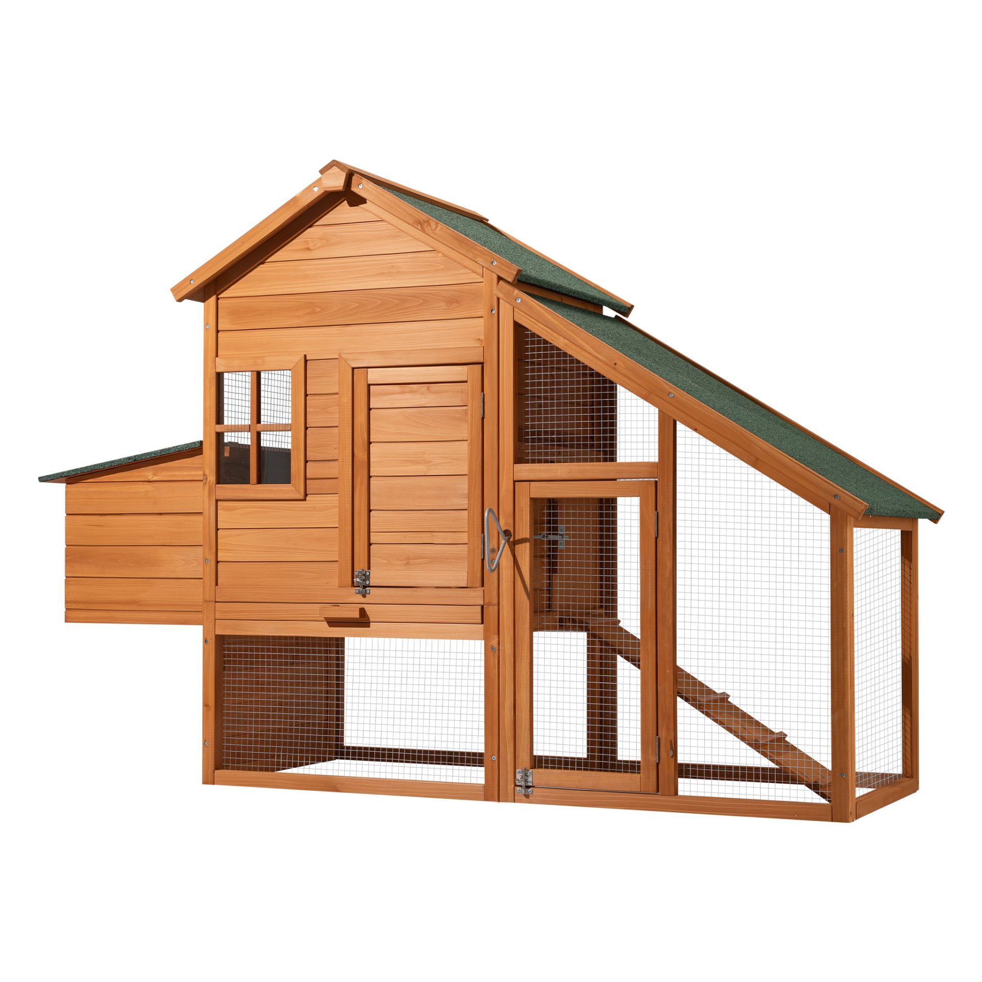 Kurnik łączy w sobie strefę nocną, bezpieczny wybieg oraz miejsce do nioski. Dzięki precyzyjnemu dopasowaniu elementów, montaż jest intuicyjny, a codzienna obsługa stada – od karmienia po zbieranie jaj – niezwykle prosta.