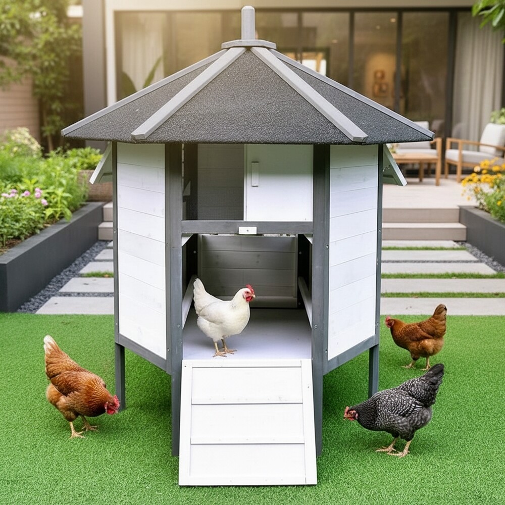 Nasz stylowy 6-kątny kurnik ogrodowy w formie pawilonu to coś więcej niż zwykły kurnik. To przemyślana konstrukcja, która łączy w sobie elegancję z maksymalną funkcjonalnością. Idealnie wpisuje się w architekturę ogrodu, zapewniając ptactwu domowemu oraz małym zwierzętom bezpieczne schronienie przed drapieżnikami i zmiennymi warunkami pogodowymi.