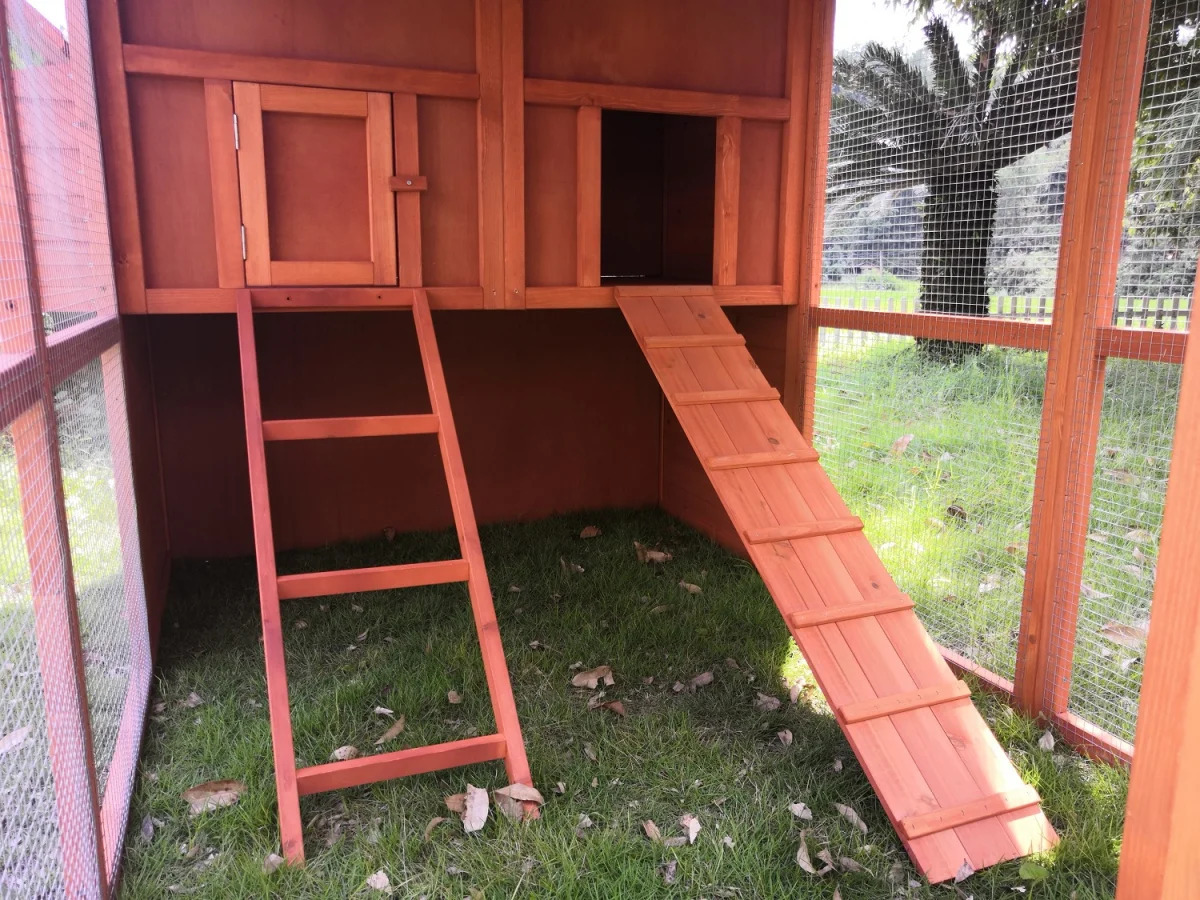 Dwupoziomowy Komfort: Model K14B posiada unikalny system dwóch drabin, prowadzących do przestronnej strefy wypoczynku. To idealne rozwiązanie dla większego stada kur lub królików.
